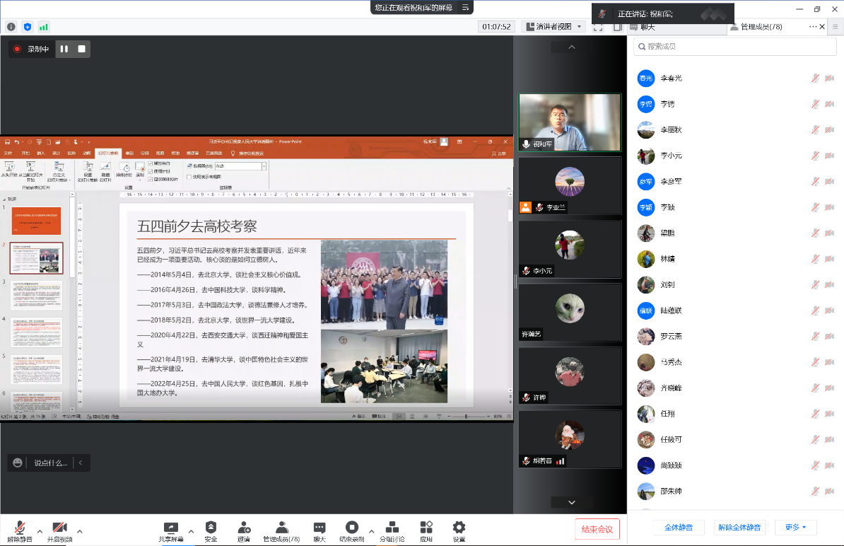 、非洲学院全体教师集中理论学习活动在线进行。马克思主义学院党总支书记祝和军为两院全体教师进行了题为“习近平总书记考察人民大学讲话精神与思政课程建设”的讲座。学习活动由即时比分