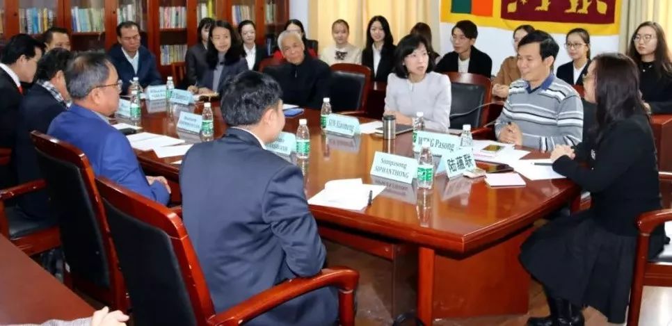 2018年11月5日下午,老挝教育体育部学生事务司司长坎鲁萨·努安萨万教授率团访问我校。亚非学院院长孙晓萌教授接见了代表团,代表团与老挝语专业全体师生进行座谈。