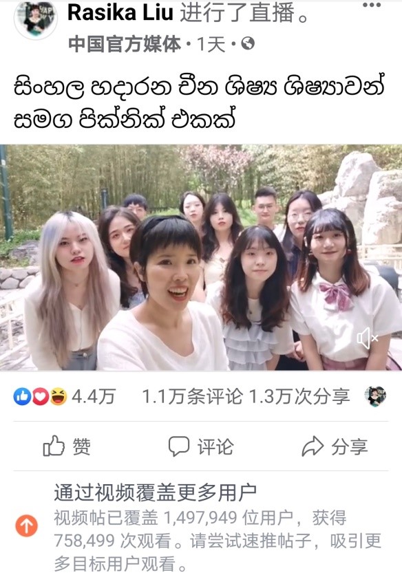 僧伽罗语专业学生参与了由中央广播电视总台亚洲非洲地区语言节目中心僧伽罗语部策划的“和学习僧伽罗语的中国学生一起野餐”主题直播节目录制。该节目于中央广播电视总台亚非中心僧伽罗语部主播的“脸书”平台发布,视频上线24小时覆盖近150万用户,播放量超过75万,获得1.1万条评论、1.3万次分享、4.4万个点赞,反响热烈。