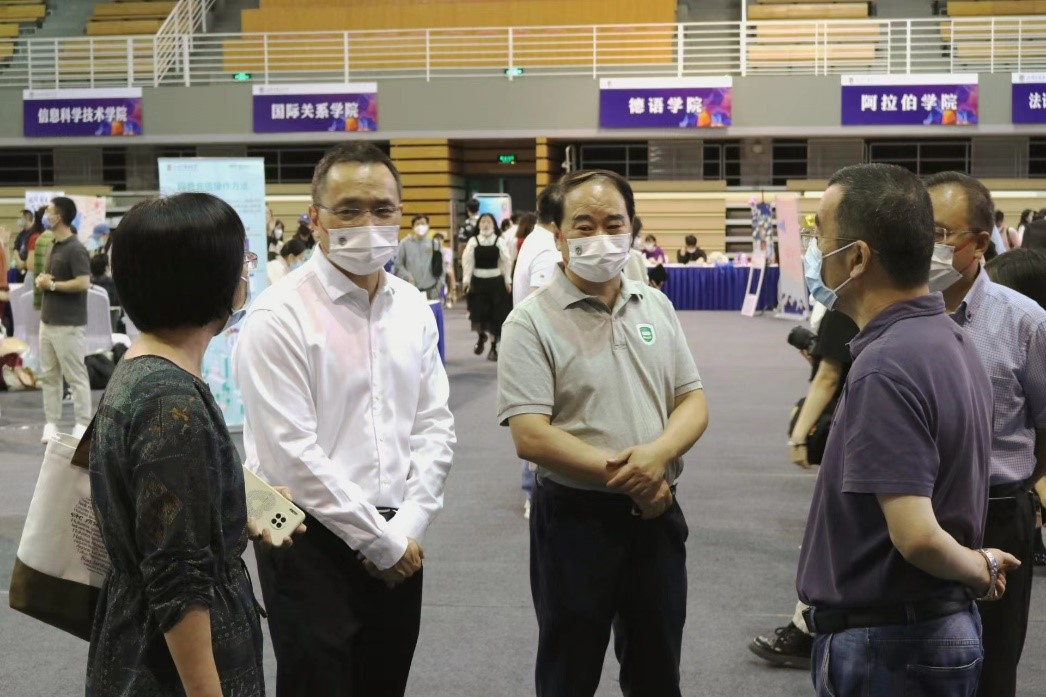 、非洲学院党总支书记许晔、非洲学院院长李洪峰及辅导员郝雪妮的陪同下来到了现场,慰问了在场的新生与工作人员。