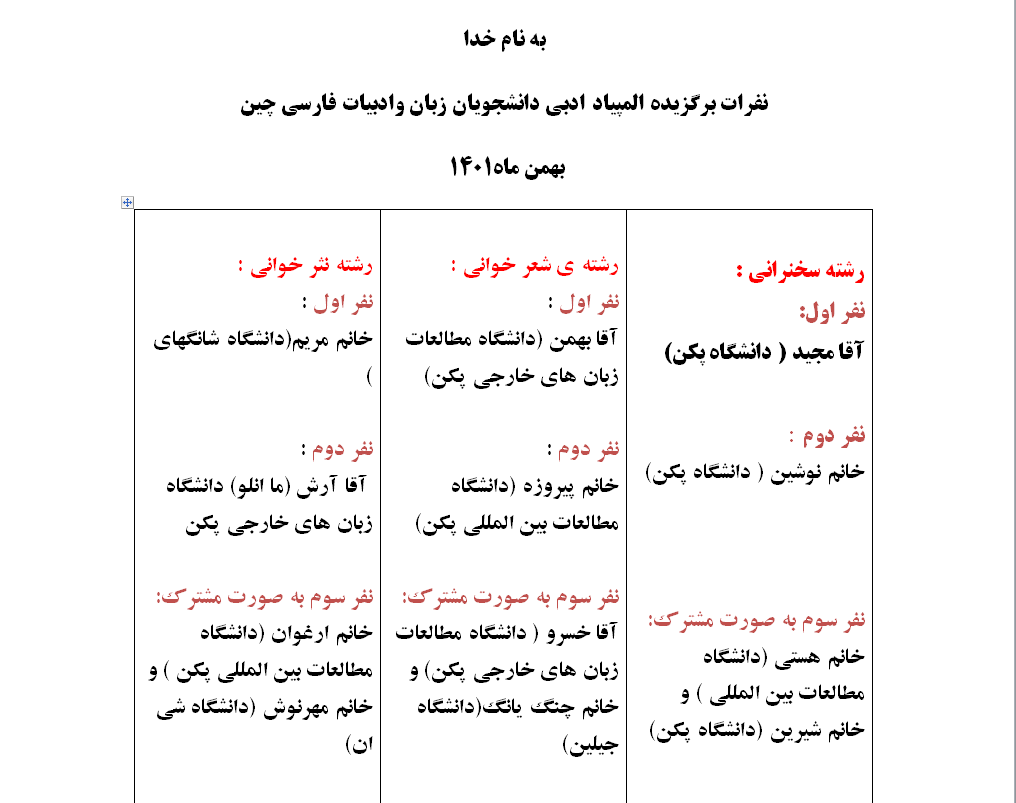 2023年2月7日上午,由伊朗驻华大使馆主办的全国波斯语演讲比赛在线上举行。本次比赛分为三个组别,分别是演讲组、诗歌朗诵组和散文朗诵组。比赛旨在激励全国波斯语专业的学生学习波斯文学,提升语言能力,促进中伊两国文化交流。