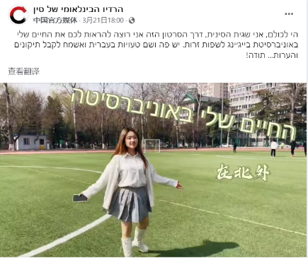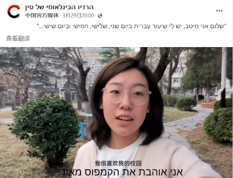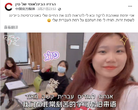 22级希伯来语专业多名学生拍摄制作的“我的北外生活”系列视频在中央广播电视总台希伯来语部海外社媒“脸书”平台陆续发布,向以色列网友介绍美丽的北外校园,展现丰富多彩的校园生活,获得积极评价。视频覆盖量达5万多,播放量近2万,互动量近3000。