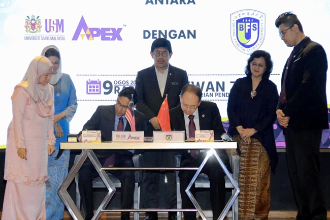 8月9日,北京外国语大学与马来西亚理科大学就《于北京外国语大学设立马来研究高级访问学者教席合作谅解备忘录》签署仪式在马来西亚高等教育部隆重举行。马来西亚高等教育部副秘书长拿督·哈吉·莫卡·沙尼、高教司司长阿兹琳达·阿兹曼、高教司副司长拿督·诺尔赞尼·阿兹曼,马来西亚理科大学校长阿卜杜勒·拉赫曼·穆罕默德,北外党委副书记、副校长贾文键,以及马来西亚20余所公立高校、3所政府关联高校领导出席仪式。