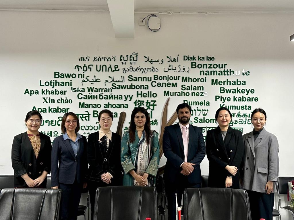 乌尔都语教研室主任周袁、国际处交流科科长关馨及巴基斯坦使馆教育处秘书穆罕默德·纳维德参与了会见。