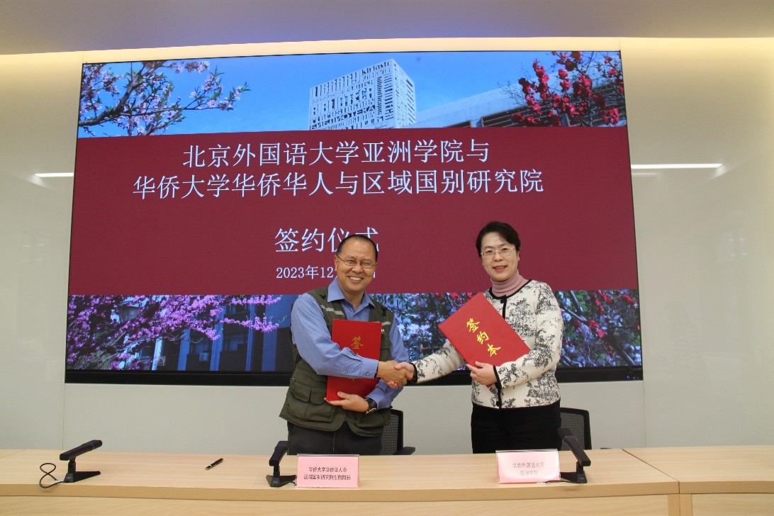 院长苏莹莹和华侨大学华侨华人与区域国别研究院院长吴小安分别代表双方签署协议。仪式由即时比分