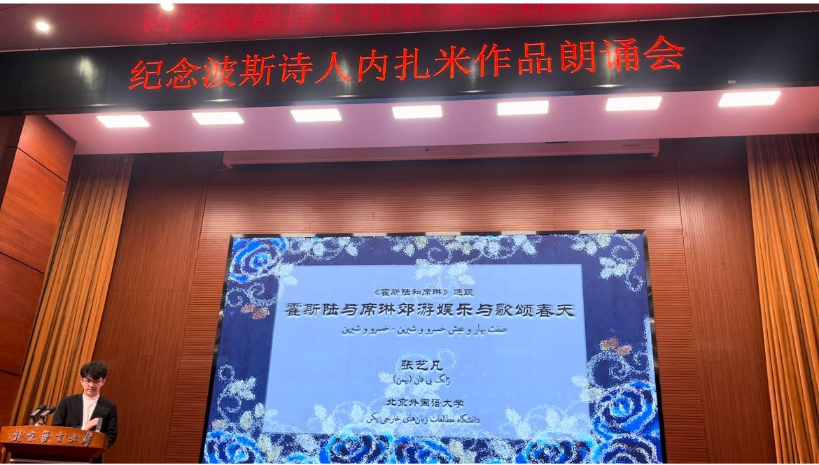 波斯语和地区研究教研室师生应北京语言大学中东学院邀请,参加了纪念波斯诗人内扎米作品朗诵会。参加本次活动的还有来自北京大学、北京语言大学、北京第二外国语学院、对外经济贸易大学等高校的师生。