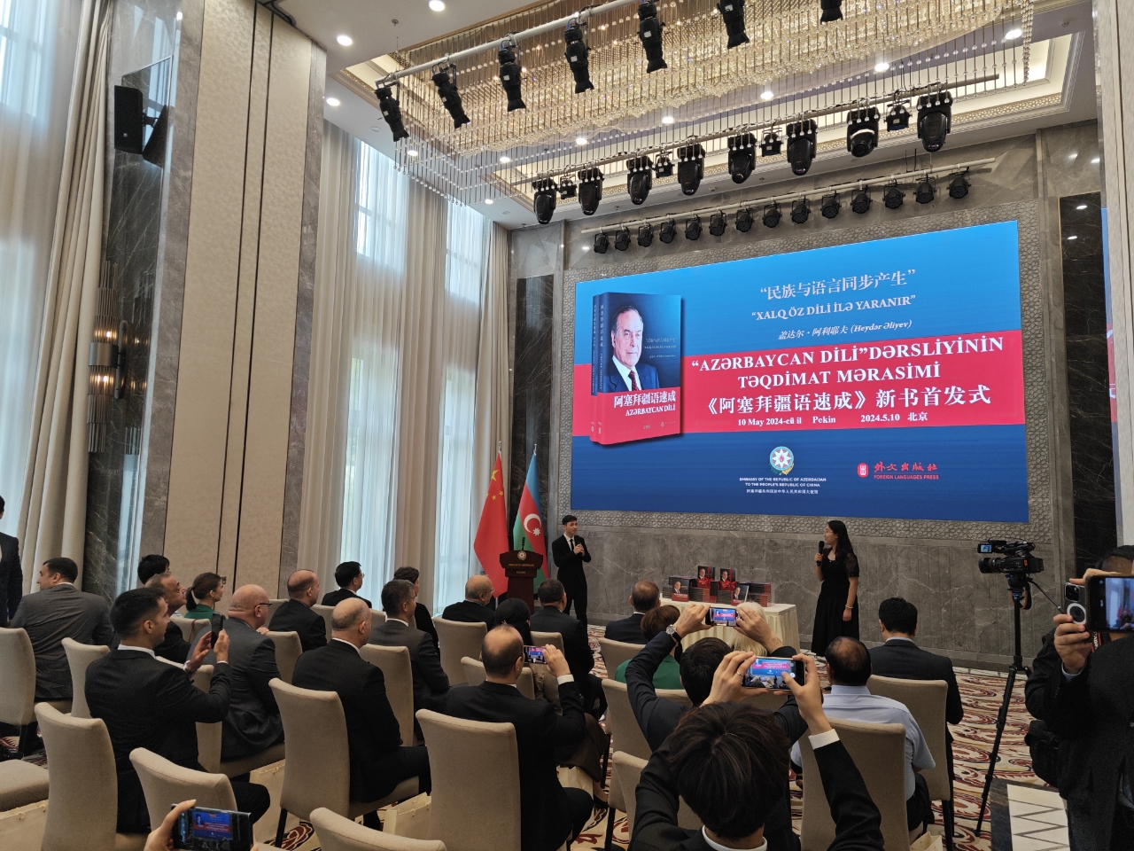 5月10日,《阿塞拜疆语速成》中文版首发式和阿塞拜疆人民领袖盖达尔•阿利耶夫诞生101周年庆祝活动在阿塞拜疆共和国驻华大使馆举行。阿塞拜疆驻华大使布尼亚德·胡塞诺夫、中国外文局副总编辑陈实、外文出版社社长胡开敏,该书作者伊拉纳·阿利耶娃、即时比分-足球现场比分