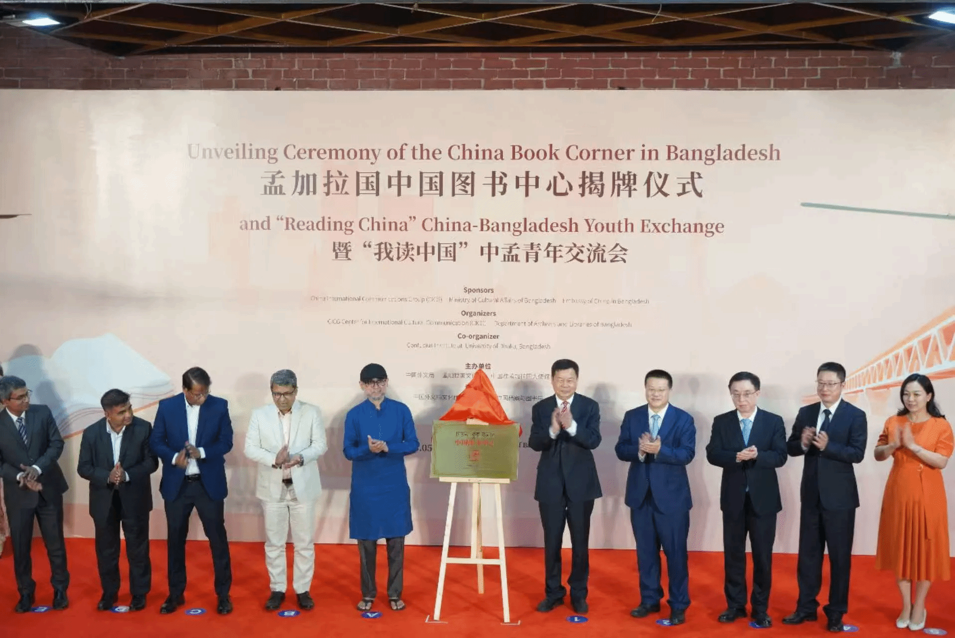 当地时间5月11日,孟加拉国中国图书中心揭牌仪式暨“我读中国”中孟青年交流会在孟加拉国国家图书馆举行。中国外文局局长杜占元、中国驻孟加拉国大使姚文、孟加拉国文化顾问法鲁基、孟加拉国文化部常秘拉赫曼出席活动并致辞,中孟两国媒体、高校、企业青年代表等近300人参加活动。