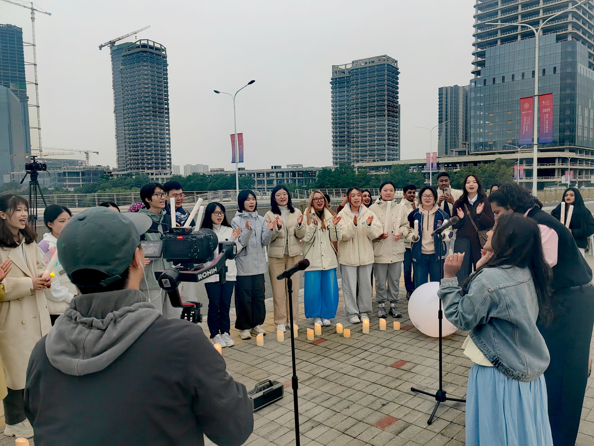 本节目旨在促进中国和斯里兰卡两国文化互鉴和青年友好交流,节目组邀请了斯里兰卡知名演员、歌手Shanudrie Priyasad作为斯方主要嘉宾,中方主要嘉宾为我校僧伽罗语专业学生和斯里兰卡留学生。在位于通州大运河文化广场的节目录制现场,同学们用僧伽罗语与嘉宾进行对话,与嘉宾共同跳起欢快的斯里兰卡手势舞,教嘉宾演唱中文歌曲《甜蜜蜜》,为嘉宾表演僧伽罗语流行歌曲吉他弹唱,也在嘉宾的指导下学习了僧伽罗语经典老歌。现场气氛热烈,笑声不断,现场的温情与当天寒冷的天气形成了鲜明的对比,歌声中传递出中斯两国文化的交融与共鸣,而北外同学们的热情与专业也获得了嘉宾和节目组的一致认可与称赞。