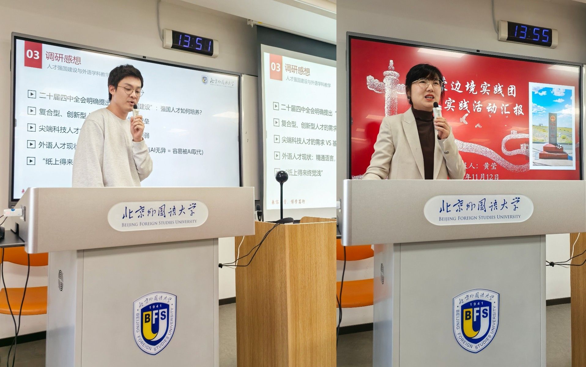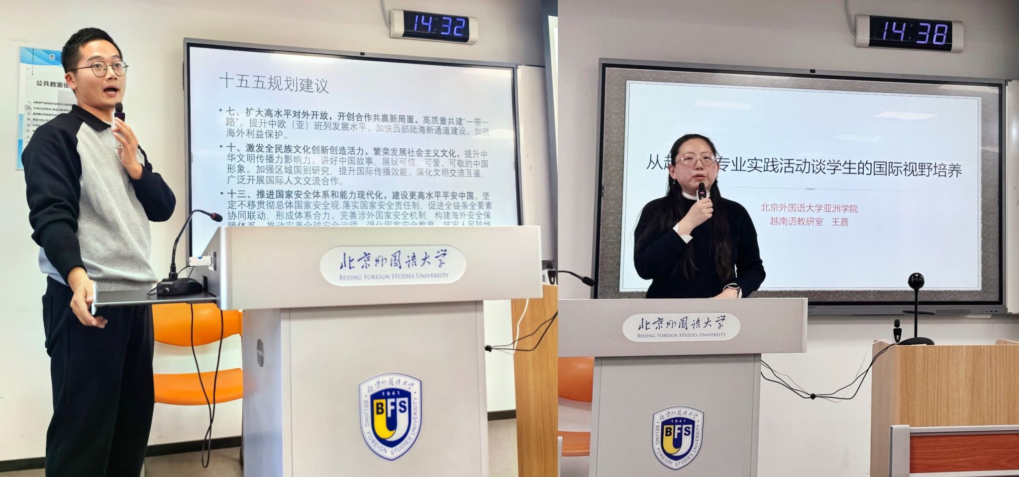 王嘉老师介绍了组织开展语言实践、举办学术讲座等提升学生专业素养的培养模式,并分享了前往云南等地开展中越边境实践团的收获。这些活动充分体现了北外将语言优势、学术研究与服务社会相结合的综合育人理念。