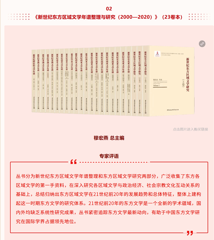 中国社会科学出版社2025年出版图书约2000种,从中评选出23种年度优秀出版成果。即时比分 穆宏燕教授任总主编的《新世纪东方区域文学年谱整理与研究》23卷丛书荣登中国社会科学出版社2025年度优秀出版成果榜单。