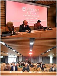 印尼语教研室主任高诗源、教师王丹丹、刘洋、外籍专家汉迪,北外校友办,教育基金会,国际交流与合作处,留学生办公室负责同志,印尼校友会会长谢异及校友代表等参加活动。