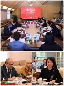 院长苏莹莹等在行政楼五层会议室与公使一行举行座谈。