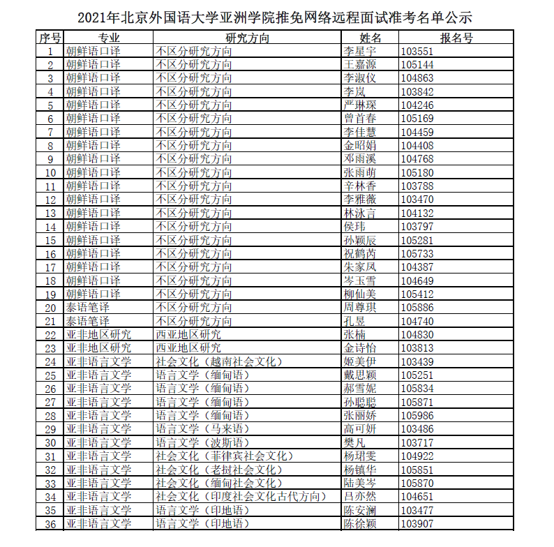 2021年接收优秀应届本科生免试攻读硕士学位研究生线上面试准考名单公示如下,具体考试信息请接收邮件通知。